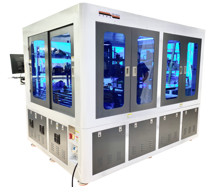 The application field is mainly used for automatic on-line lamination of auxiliary materials (PSA film, label, PI, etc.) in 3C and FPC assembly process. The track conveying structure is adopted, the X, Y axes driven by linear motor and CCD camera sca